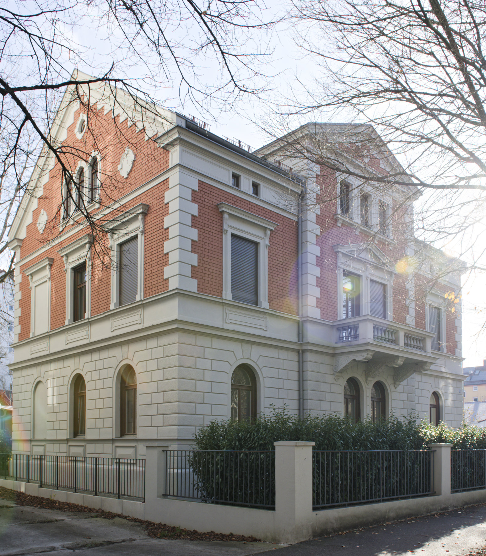 Einen wesentlichen Teil der ausführenden Arbeiten, die im Frühjahr 2023 begannen, übernahm die Schreinerei und Zimmerei Lidel aus Augsburg: Dazu gehören hocheffiziente Fenster, die sich stimmig in den denkmalgeschützten Bestand einfügen und einen großen Beitrag zu höherer Energieeffizienz leisten. Teilweise stammen diese aus dem Denkmal-Programm von PAX, teilweise wurden sie selbst angefertigt. Da die denkmalgeschützte Fassade keine Außendämmung zuließ, bekam die energetische Optimierung der Fensteranschlüsse viel Aufmerksamkeit. Das verhindert, dass Wärmebrücken entstehen. Aus diesem Grund wurde auch der Balkon, sonst oft eine Wärmebrücke und Ursache für Schimmel, aufwändig energetisch abgetrennt. Darüber hinaus erhielt die Stadtvilla eine Dachdämmung und neue Heiz- und Klimatechnik. In dem wieder ansehnlichen Haus befinden sich nach etwa einem Jahr Umbauzeit drei lichte und moderne Wohnungen.